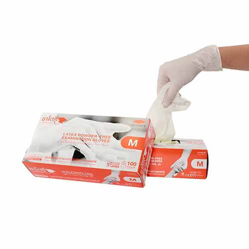 ถุงมือศรีตรัง กล่องส้ม แบบยางธรรมชาติผิวไม่เรียบ ไม่มีแป้ง
